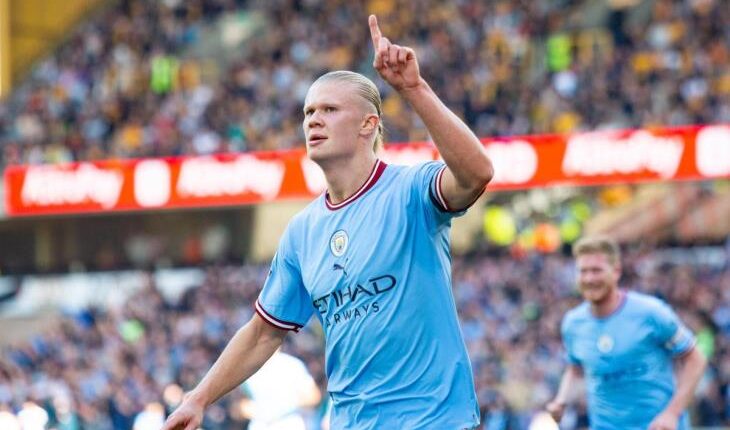 وقدم هالاند, موسماً أولاً له في الـ(بريميرليج) تاريخى, حيث إستطاع تحطيم الرقم القياسي السابق البالغ 34 هدفا في موسم واحد بالدوري الممتاز, والذي تقاسمه آندي كول وآلان شيرر, وصمد نحو ثلاثة عقود, قبل أن يأتى هو و يسجل 36 هدفاً, ليقود سيتي للقبه الثالث على التوالي.