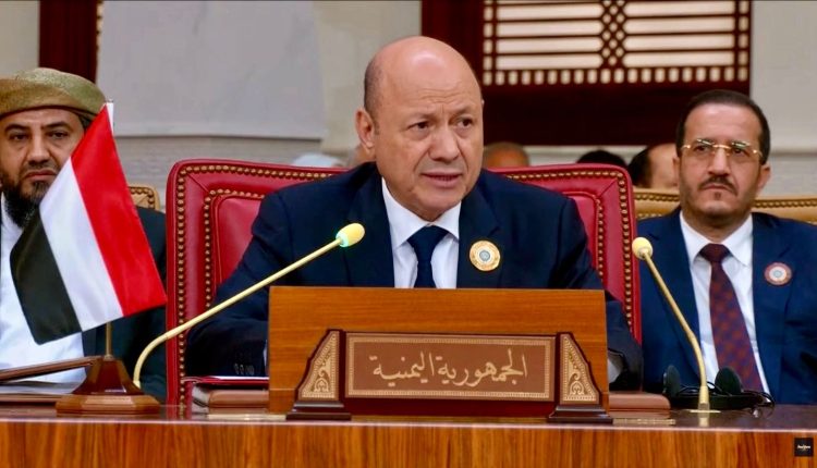 وخلال كلمته بالقمة العربية الطارئة.أشار العليمى إلى وجود تحركات إيرانية تهدف زيادة إستثماراتها فى جماعة الحوثى لتعويض الخسارة التى تكبدتها فى سوريا ولبنان.