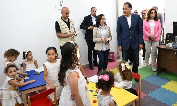 واستمع مدبولى ومرافقوه إلى شرح تفصيلي من د.ماجدة جلالة، وكيل مديرية التضامن الاجتماعي بالبحيرة، التي أوضحت أن مبنى المركز يتكون من طابقين، بواقع دور أرضي به غرف إدارية، وفصول للمراحل التعليمية من سن 2 لـ 4 سنوات، ومن سن 3 لـ 5 سنوات، وحديقة ترفيهية للأطفال، ويضم الطابق الثاني غرفة تخاطب وغرفة أنشطة ومكتبين إداريين للمعلمين.