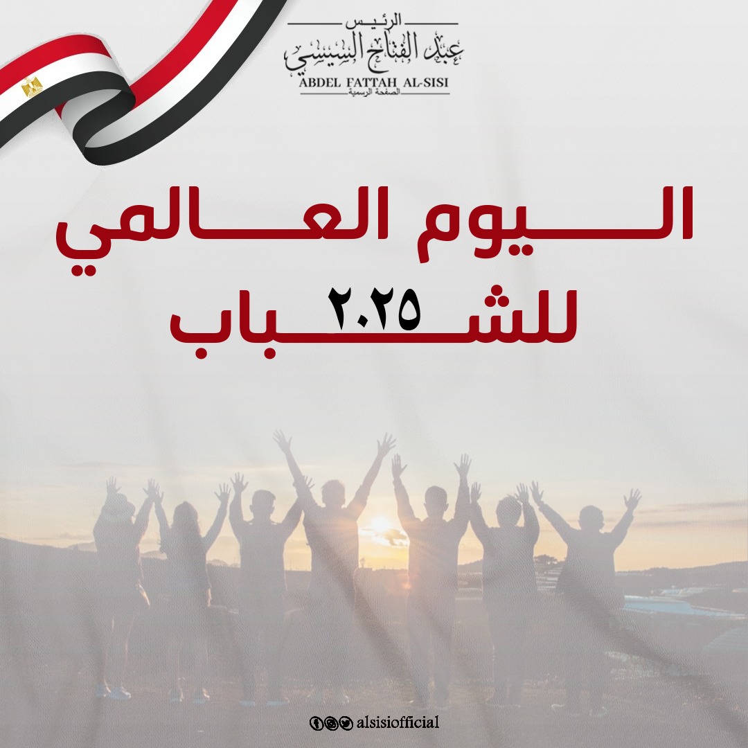 وجه الرئيس المصرى, عبدالفتاح السيسى, الأربعاء, بالتحية لشباب مصر, مشيدا بوعيهم الوطنى, ومساهمتهم فى بناء حاضر يليق بتاريخ الدولة المصرية العريقة, جاء ذلك فى بمناسبة الإحتفال باليوم العالمى للشباب2025.