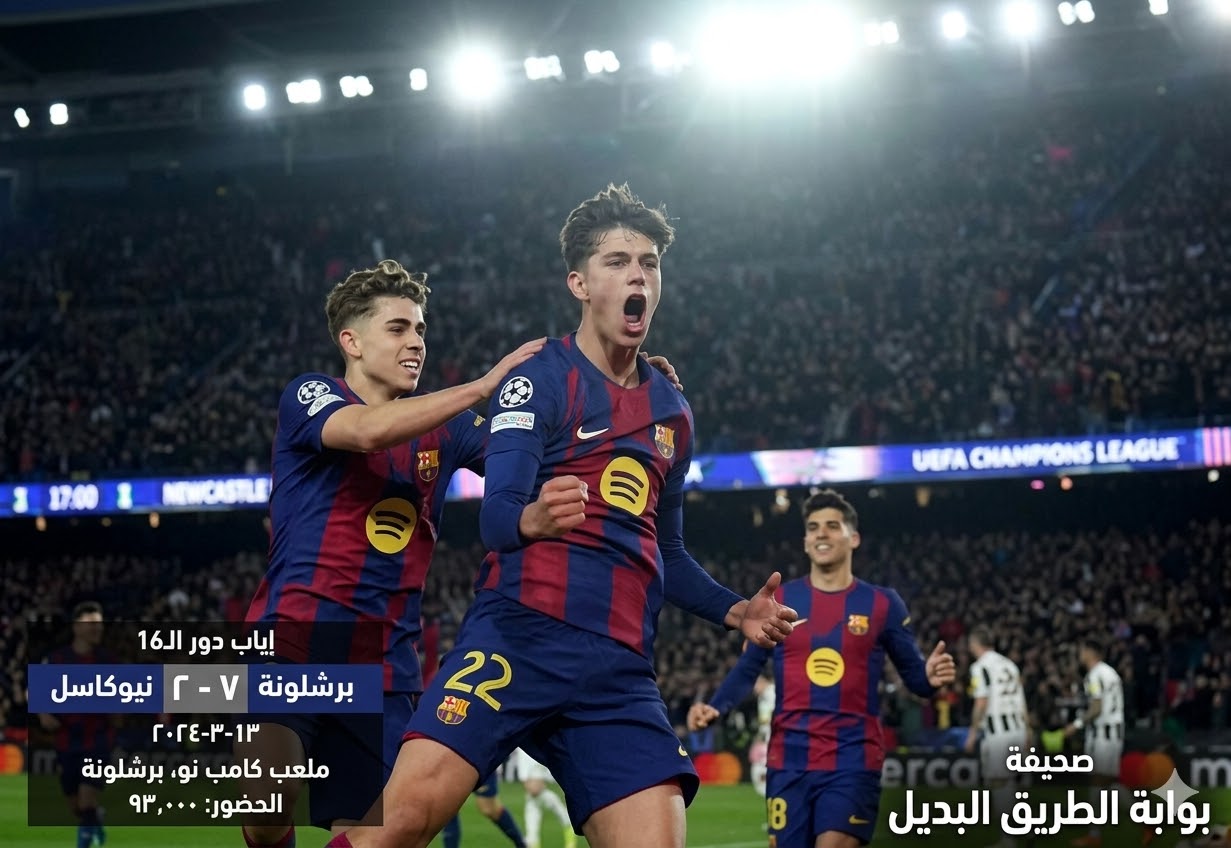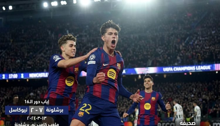 في ليلة كروية عاصفة على ملعب “كامب نو”، مساء الأربعاء، سطّر نادي برشلونة ملحمة كروية تاريخية، محققاً فوزاً كاسحاً وغير متوقع على ضيفه نيوكاسل يونايتد بنتيجة 7-2، في إياب دور الـ16 لبطولة دوري أبطال أوروبا.