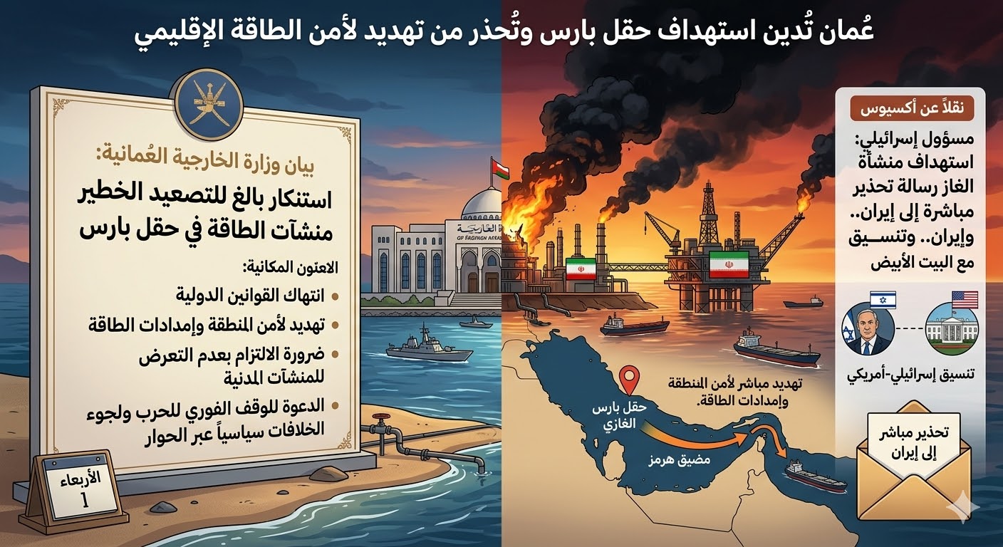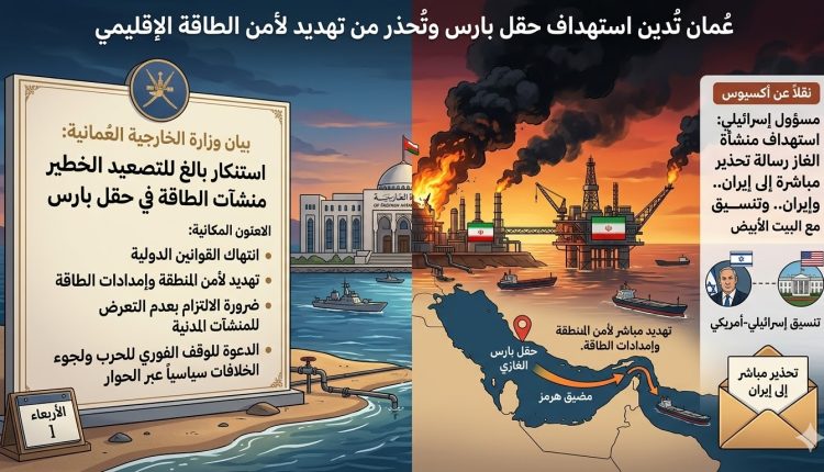 عُمان تُدين “بشدة” استهداف حقل بارس الإيراني وتحذر من تهديد “خطير” لأمن المنطقة وإمدادات الطاقة