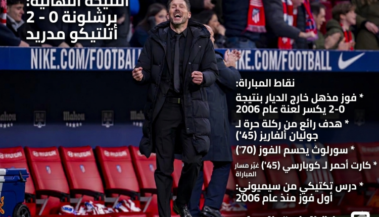 أتلتيكو مدريد يغزو “كامب نو” بثنائية ويضع قدماً في نصف نهائي أبطال أوروبا