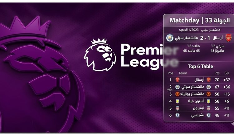 مباراة مؤجلة: يمتلك رجال بيب غوارديولا أفضلية “المباراة الناقصة”، حيث خاضوا 32 مباراة مقابل 33 لأرسنال.